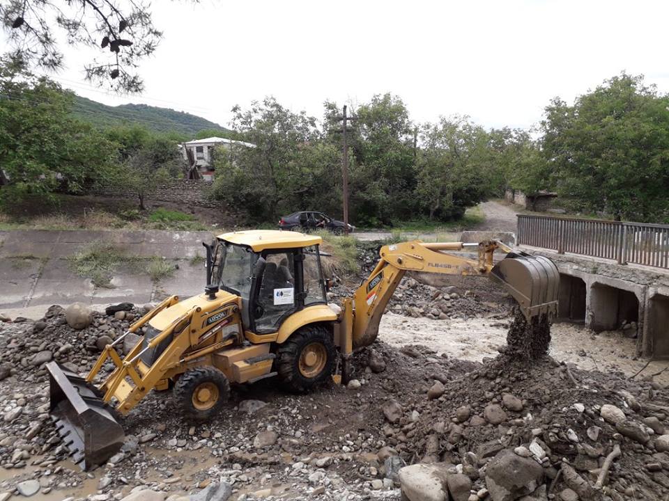 ადგილზე მუშაობს კომპანიის სპეციალური ტექნიკა, რომელიც სოფელ კარდენახში ხევისუბნისა და კულანჯის ხევის გაწმენდით ღონისძებებს აწარმოებს.