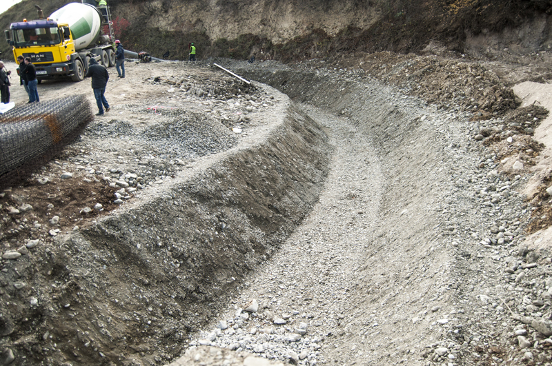 Anti-leakage arrangements on the reach of main canal of Tezi-Okami irrigation system are being carried out in Kaspi municipality, Shida Kartli region. The canal will be lined with cast-in situ concrete.