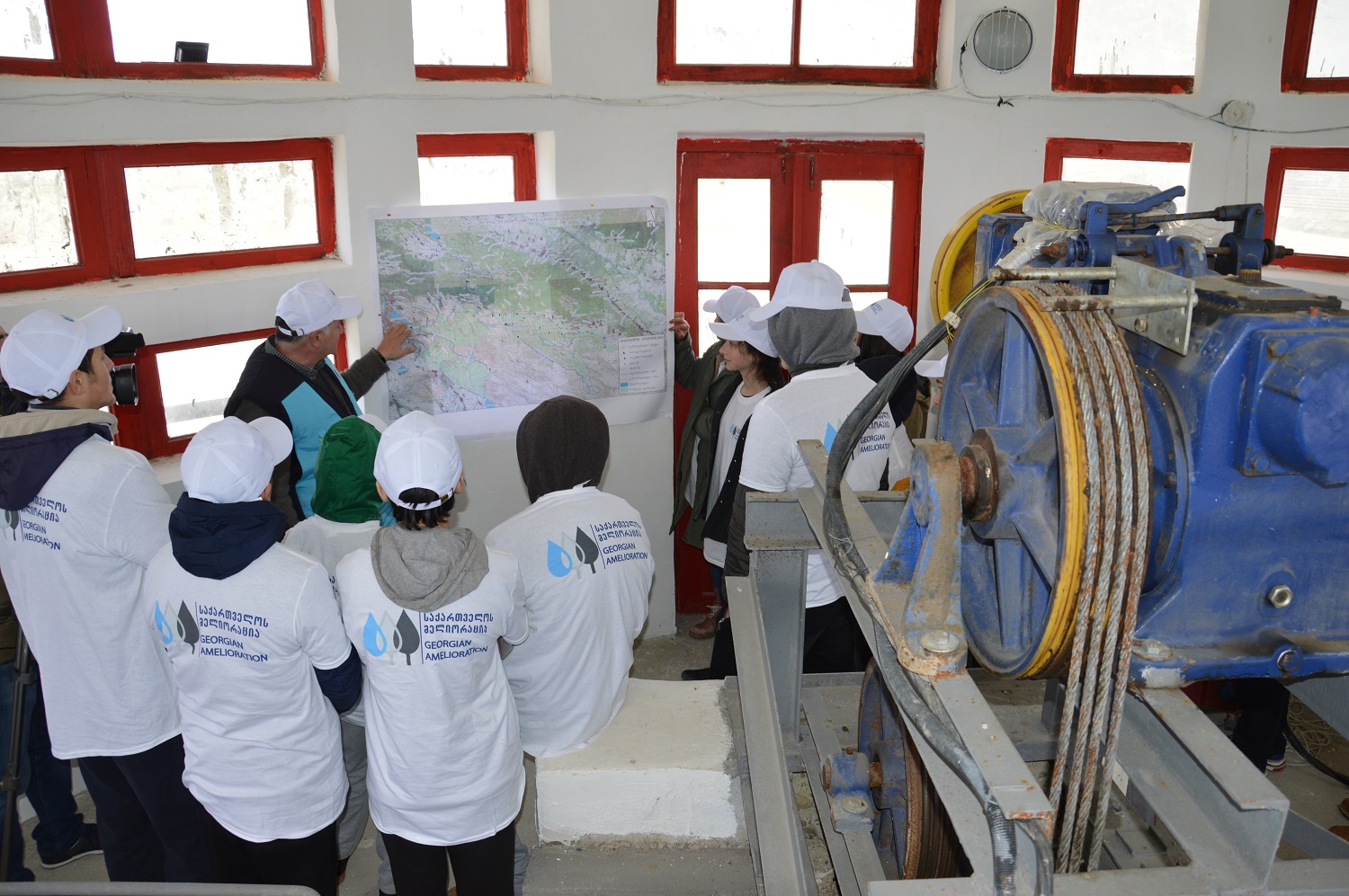 George Chkonia –Head of Zemo Samgori service center spoke about the amelioration scheme and introduced the pupils with the story of the reservoir and operation specifics.
