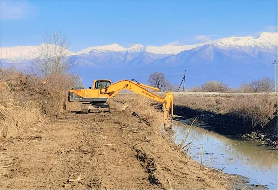 The irrigation canal up to 6 km length is being cleaned from sediments and trees and shrubs, on the area of the villages Akhasheni and Chumlaki.