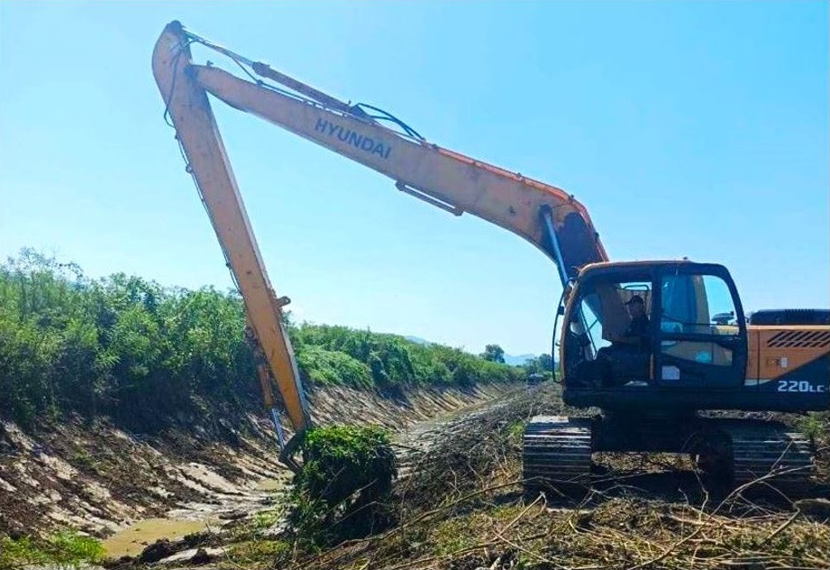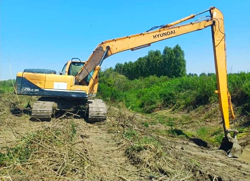 Cleaning works are underway on a 2-km long drainage canal in Lanchkhuti Municipality