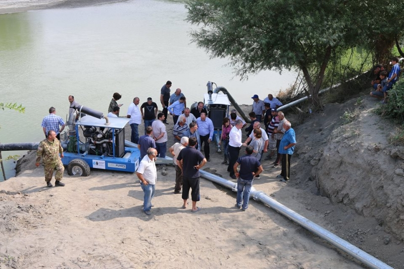 The Minister of Agriculture Otar Daneia and the General Director of LTD “Georgian Amelioration” Levan Dvali, attended the irrigation process with portable pumping stations.