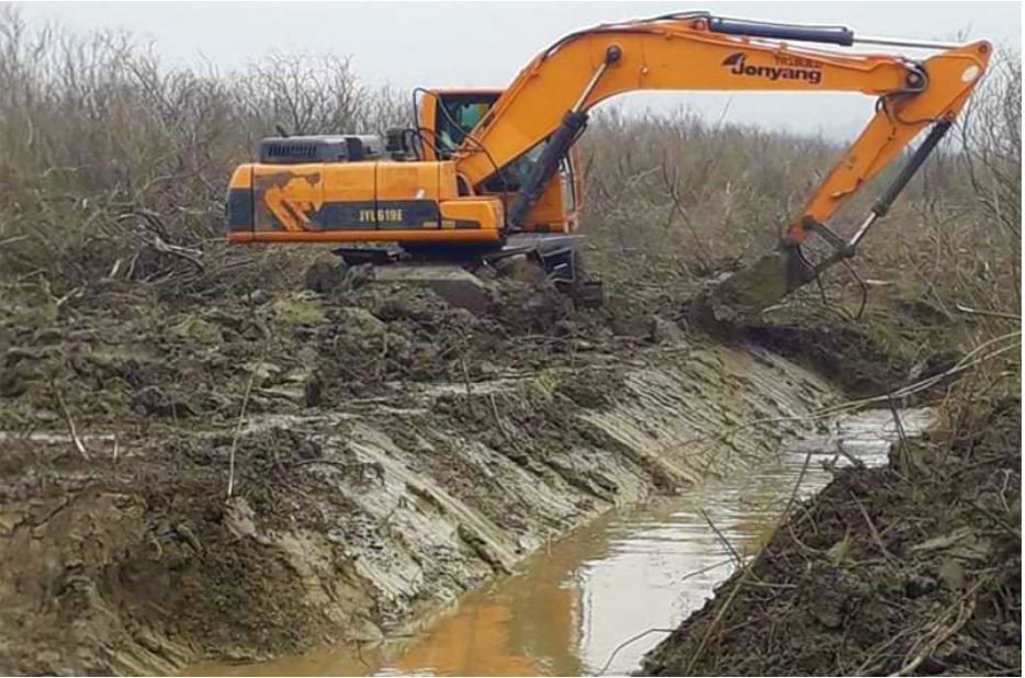 ხე-ბუჩქნარისა და ნატანი მასისგან 4 კილომეტრი სიგრძის კოლექტორები და შემკრები არხები იწმინდება.